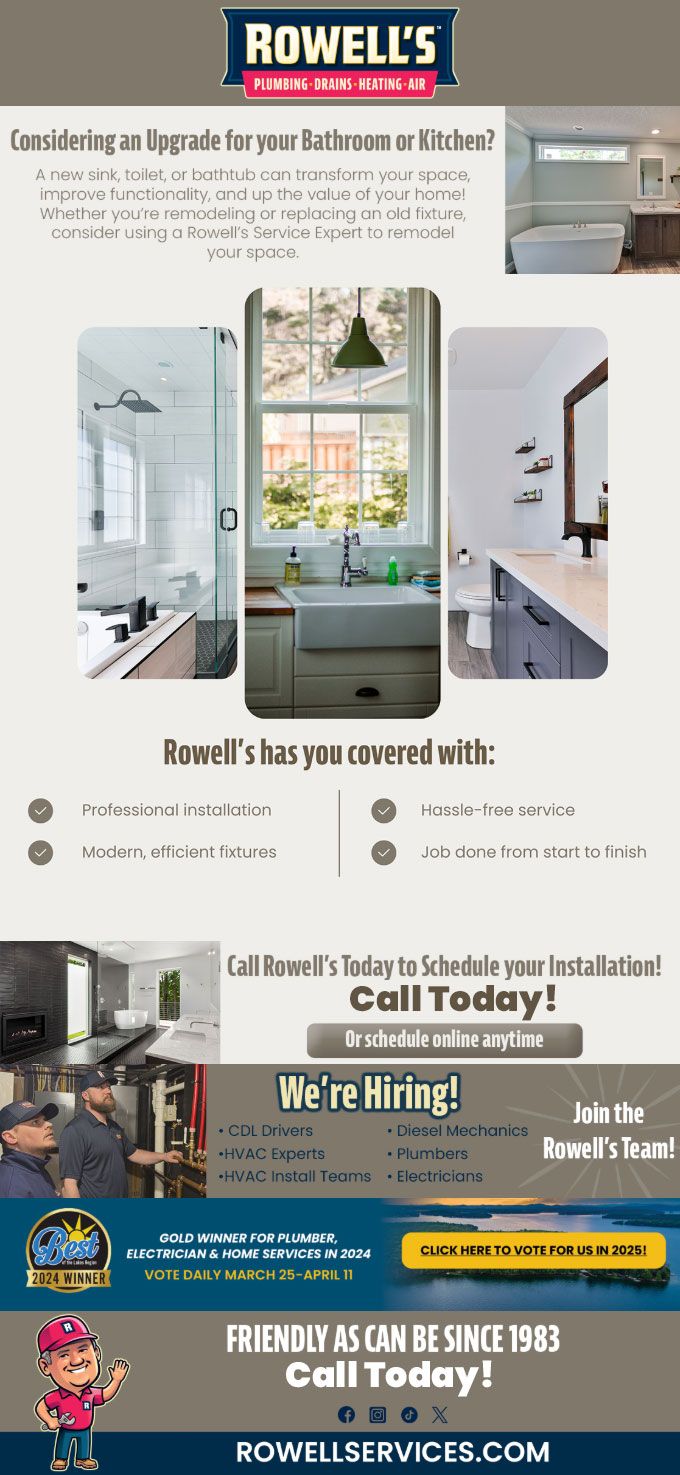 Whether you're remodeling or replacing an old fixture, consider using a Rowell's Service Expert to remodel your space.